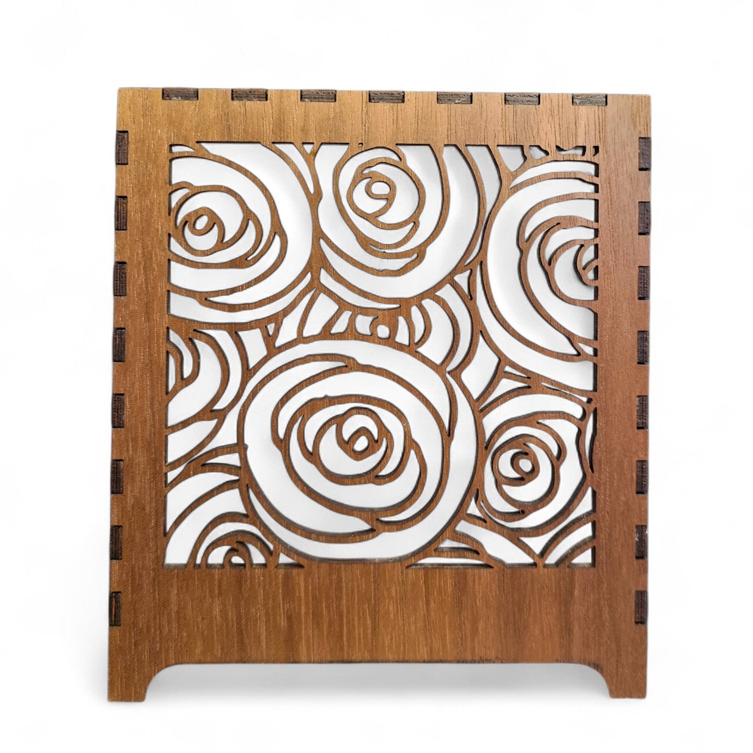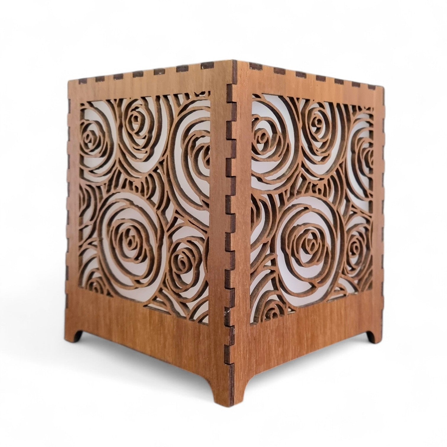 The Rose - Cube Light is a delightful battery-powered lamp, intricately laser-cut to showcase the timeless beauty of roses. Portable and easy to use, this playful lamp adds a touch of nature’s elegance to your home, perfect for brightening up any nook or setting a romantic mood with a soft, glowing light. Let the enduring charm of roses light up your space in a fun and unique way!