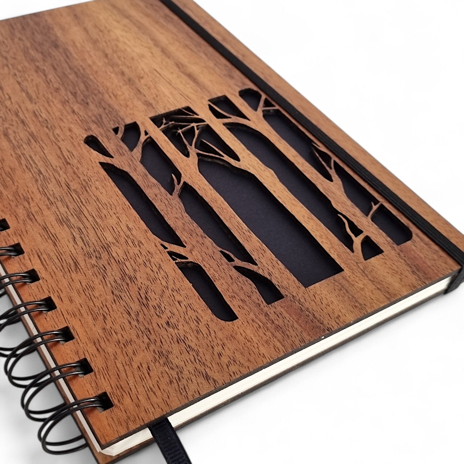This A5 sketchbook features a beautiful forest design laser-cut into its wooden cover, adding a touch of nature to your creative space. Inside, you'll find 100 pages of lightly textured110gsm paper, perfect for all kinds of media. It includes an elastic strap to keep your sketches secure and a ribbon bookmark to easily mark your spot. A fun and practical companion for every artist!