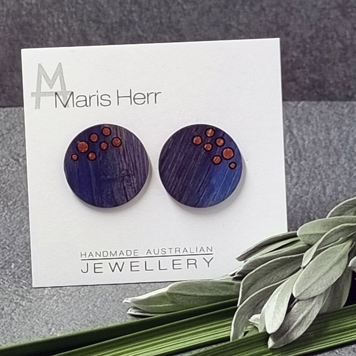 Discover our hand-coloured laser cut timber studs, crafted with precision and artistic detail. Each pair features a fun design enhanced by metallic paint highlights, adding a subtle shimmer that catches the light beautifully. Available in a diverse range of colours, these lightweight earrings offer a unique blend of natural texture and contemporary style. Perfect for adding a touch of elegance to everyday wear or making a statement at special occasions. Durable and comfortable, they provide an eco-friendly accessory option that complements any outfit.