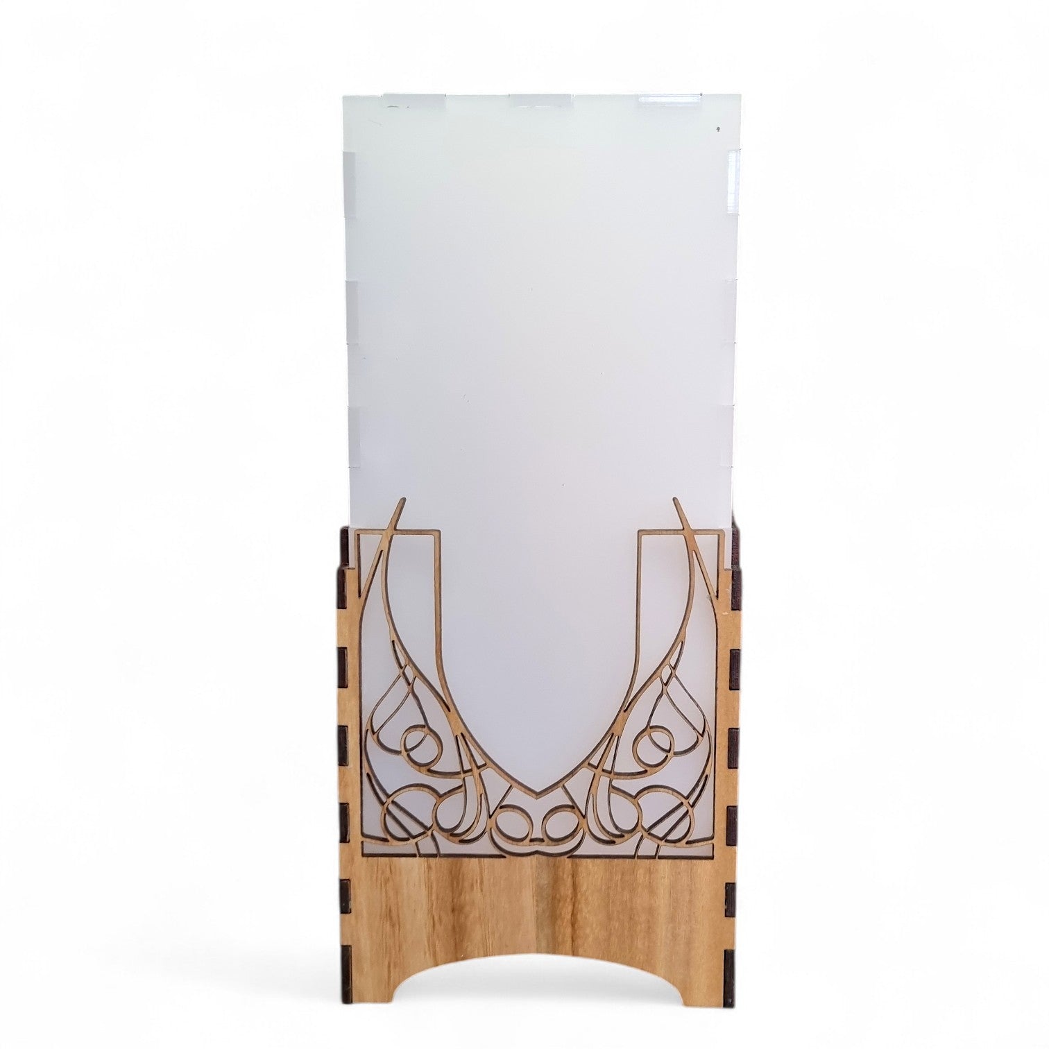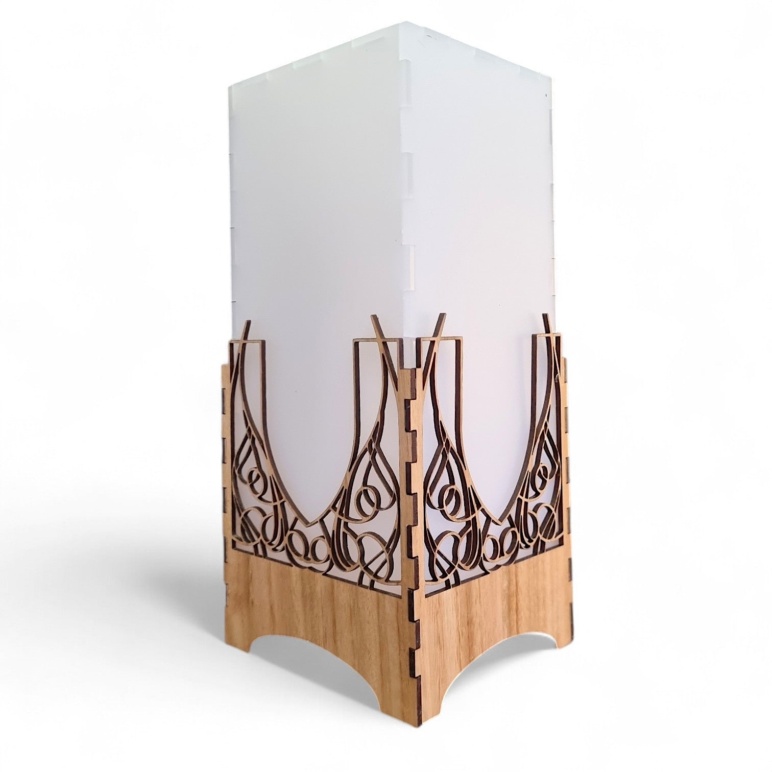 The Victoriana Light Tower playfully combines modern flair with artisanal skill, inspired by the delicate Victorian iron lacework. Its laser-cut timber frame showcases intricate patterns that highlight the wood’s natural beauty while creating a captivating visual. Topped with a frosted Perspex cover, it casts a soft, warm glow that’s perfect for adding a cozy, charming vibe to any room.