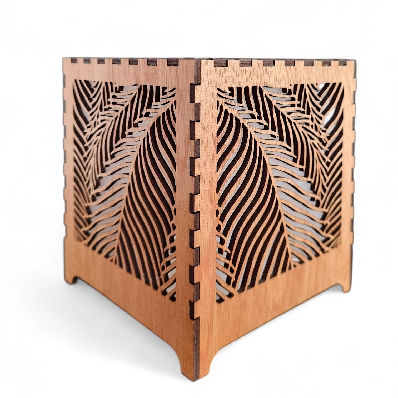 Illuminate your space with the Fern - Cube Light, a charming timber battery light featuring delicate laser-cut fern frond patterns. Its warm glow peeks through the intricate cutouts, creating playful shadows that bring nature indoors. Perfect for adding a touch of whimsy and cozy ambiance anywhere you choose—no cords required!